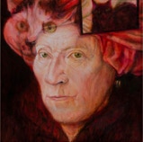 Two Cats, Man, Turban; oil on panel; 8” x 8”