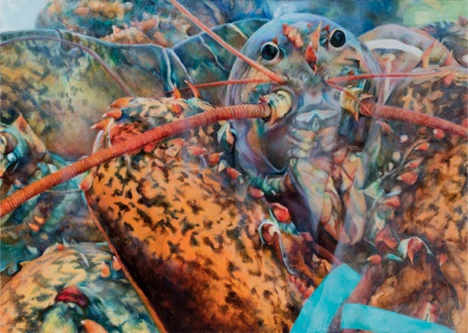 Lobster Tank, Maine Turnpike; oil on canvas; 42” x 30”