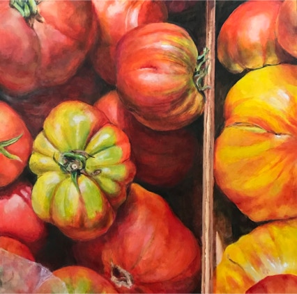 Farmers Market Tomatoes: oil on panel; 24” x 24”