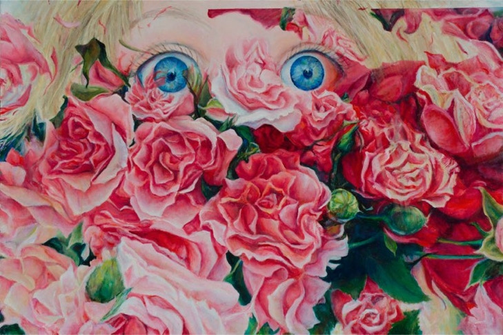 Confetti on the sidewalk; oil on panel; 30” x 24”