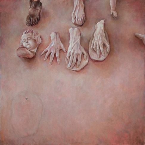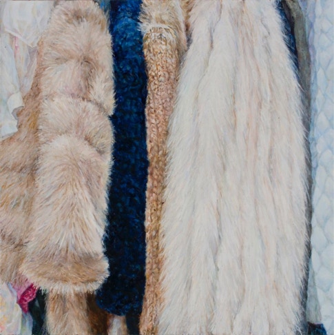 Confetti on the sidewalk; oil on panel; 30” x 24”
